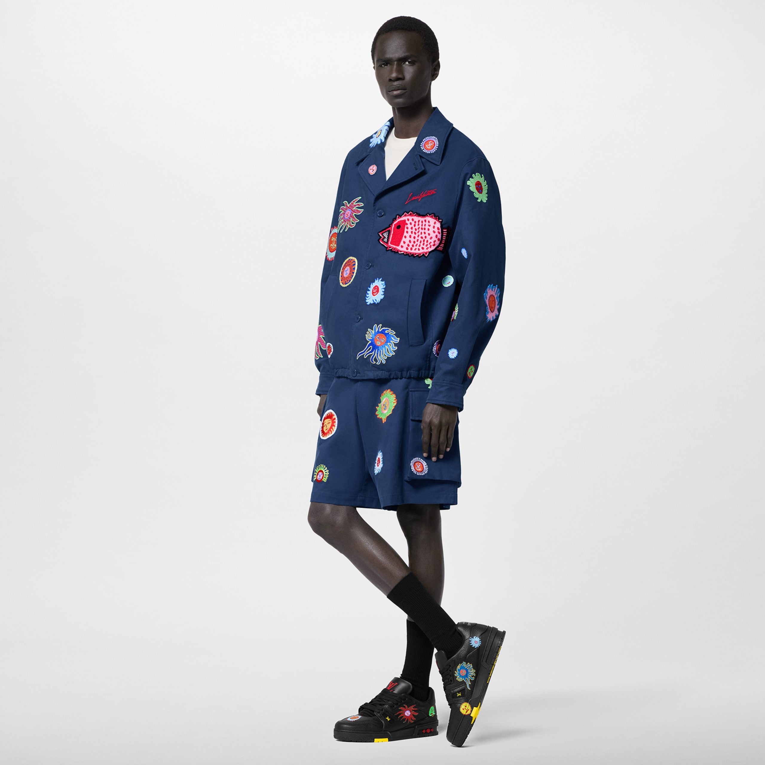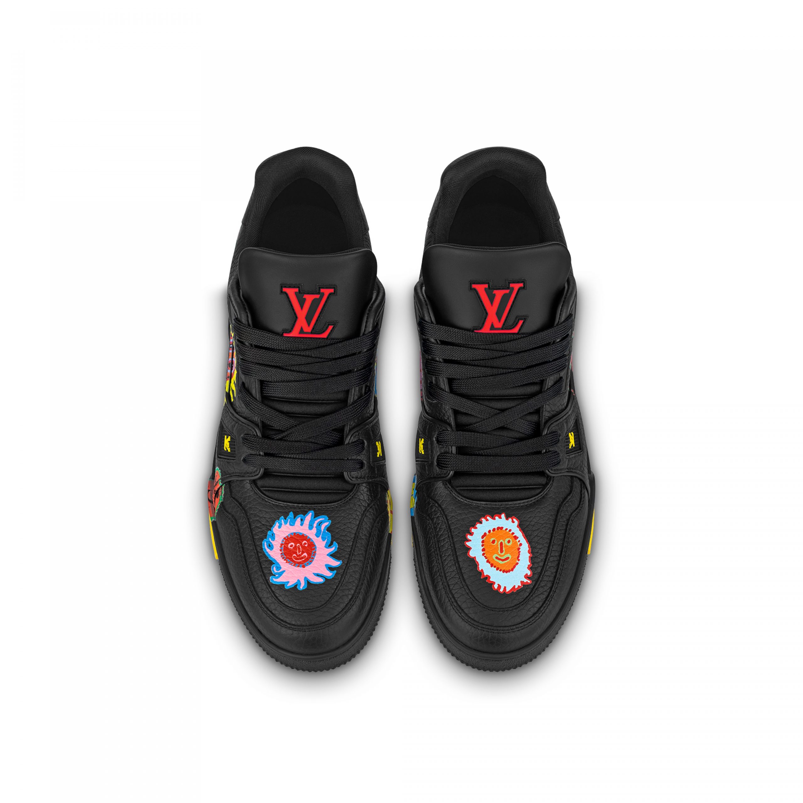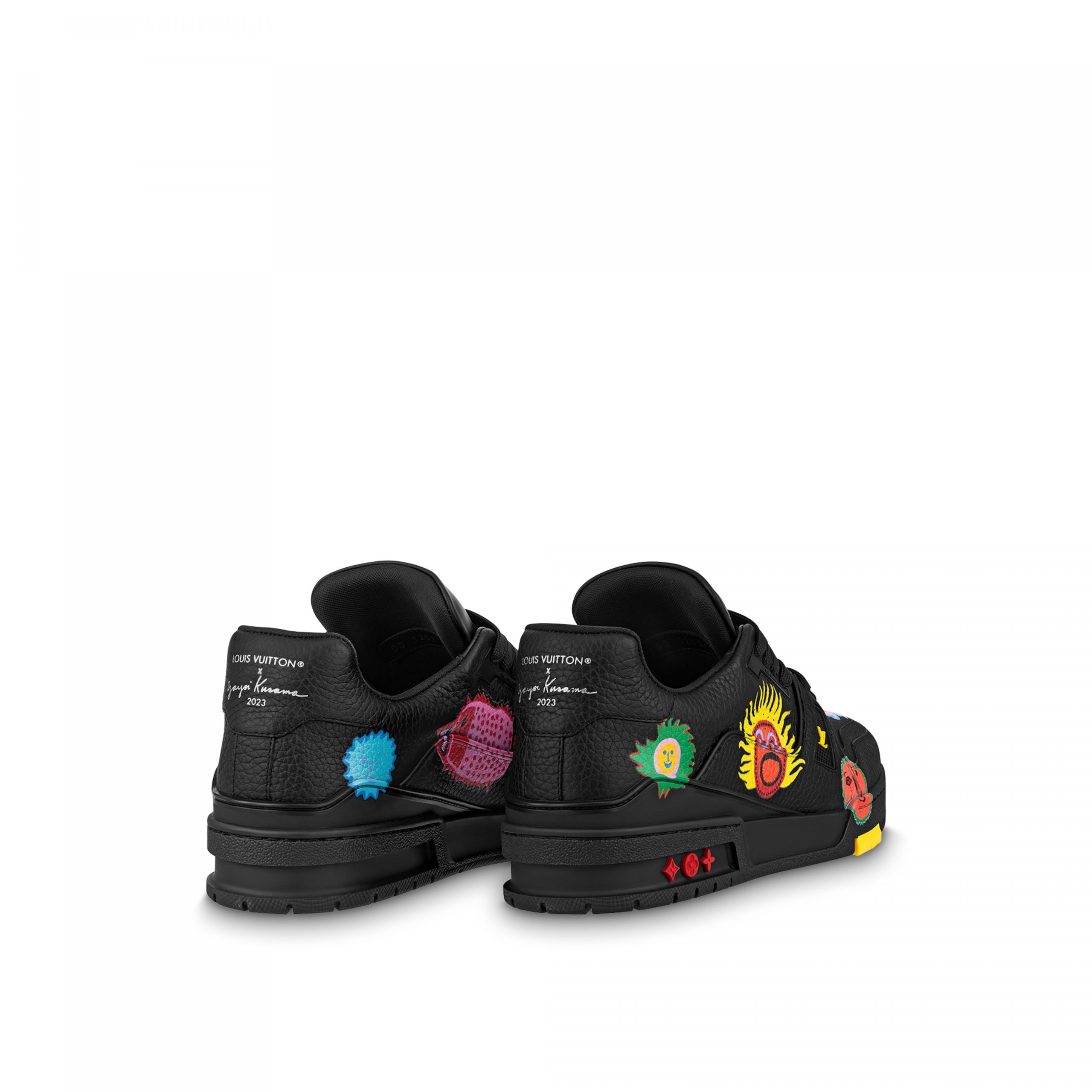 For the Louis Vuitton x Yayoi Kusama collection, the LV x YK LV Trainer sneaker comes in grained calf leather printed with a variety of colorful images. This exclusive edition is part of the collection’s “Faces” theme, which was inspired by the Japanese artist’s “My Eternal Soul” series of paintings, which she started in 2009. The back of the sneaker bears the signature of this major collaboration: Louis Vuitton x Yayoi Kusama 2023.