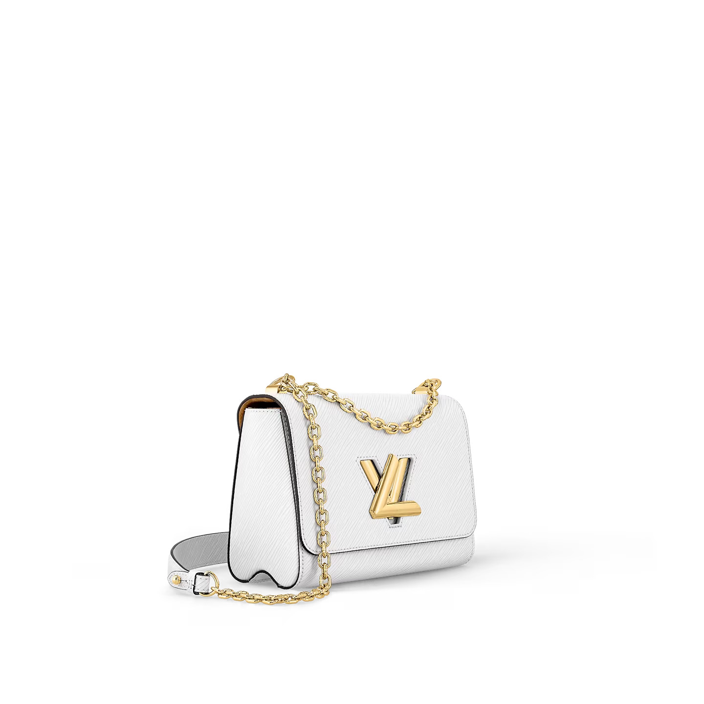 Crafted from the House’s emblematic Epi leather, the Twist MM chain bag features the now-iconic LV Twist lock, a sculptural signature in gleaming golden metal. Unexpectedly roomy thanks to the cleverly designed “wave” base, this beautifully made bag is a fashionable day-to-evening companion. The sliding chain strap can be doubled for shoulder carry or lengthened for cross-body wear. A New Classic of the House, the Twist bag was introduced at the 2015 Cruise show.