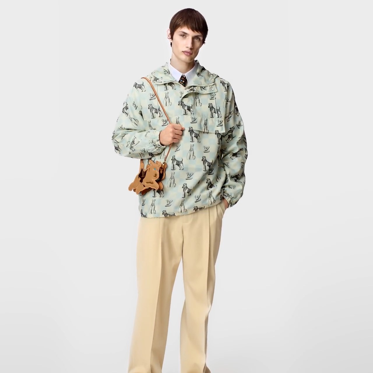 The playful Dog on Strap Wearable Wallet encapsulates the essence of the House’s exciting collaboration with Tyler. The figurative Fox Terrier dog, also featured in the Monogram Craggy pattern and as bag charms, has been enlarged to be worn as a small cross-body bag.